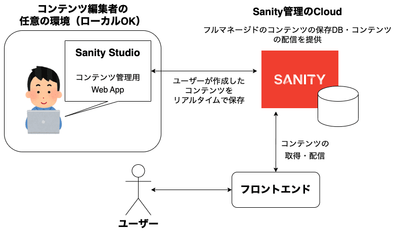 次に触ったのがSanityです。Sanityで管理する場合、CMSは以下のような構成になります。